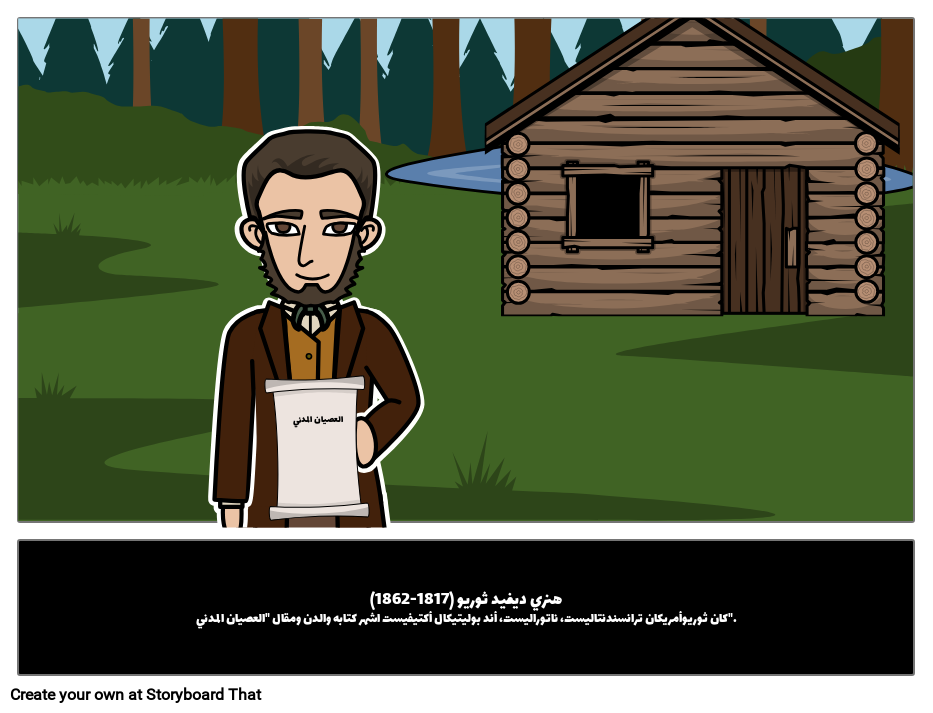 هنري ديفيد ثوريو (1817-1862)كان ثوريوأمريكان ترانسندنتاليست، ناتوراليست، أند بوليتيكال أكتيفيست اشهر كتابه والدن ومقال "العصيان المدني".