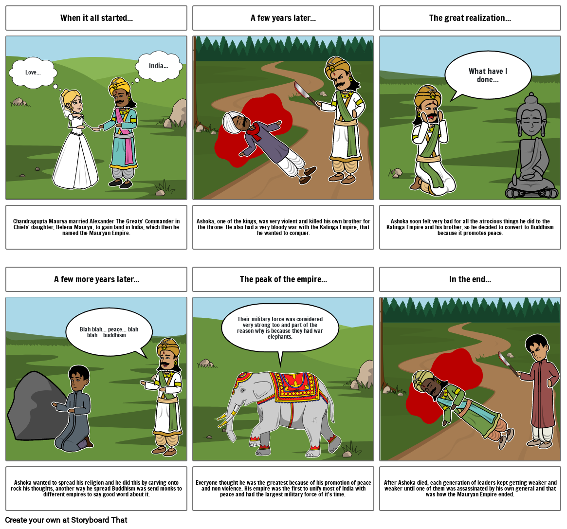 After Ashoka died, each generation of leaders kept getting weaker and weaker until one of them was assassinated by his own general and that was how the Mauryan Empire ended.