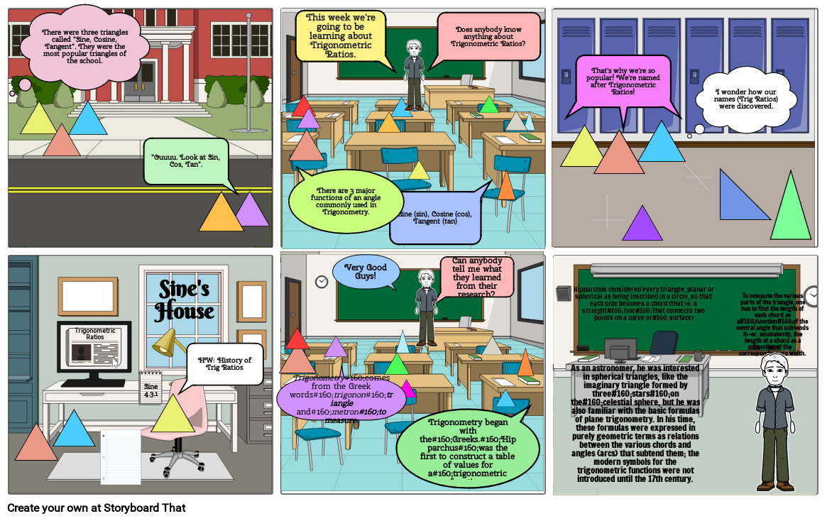 There were three triangles called "Sine, Cosine, Tangent". They were the most popular triangles of the school.