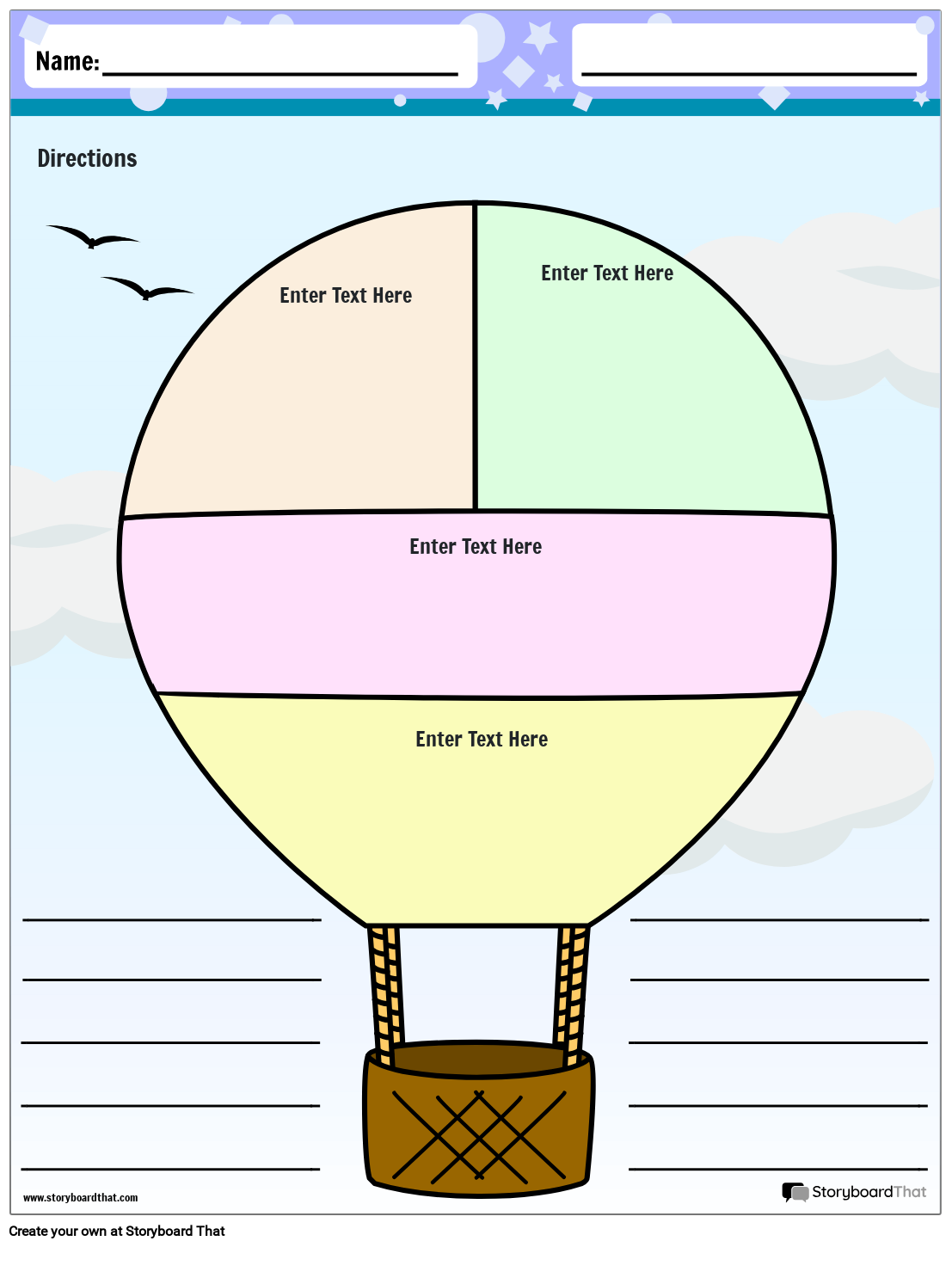Heißluftballon-Grafik-Organizer-Vorlage | Grafik-Organizer-Arbeitsblätter