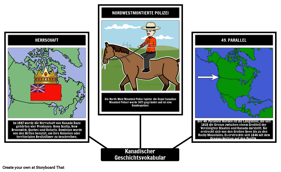 Erstellen Sie eine Spinnenkarte, um Schlüsselbegriffe der kanadischen Geschichte zu definieren und zu veranschaulichen!