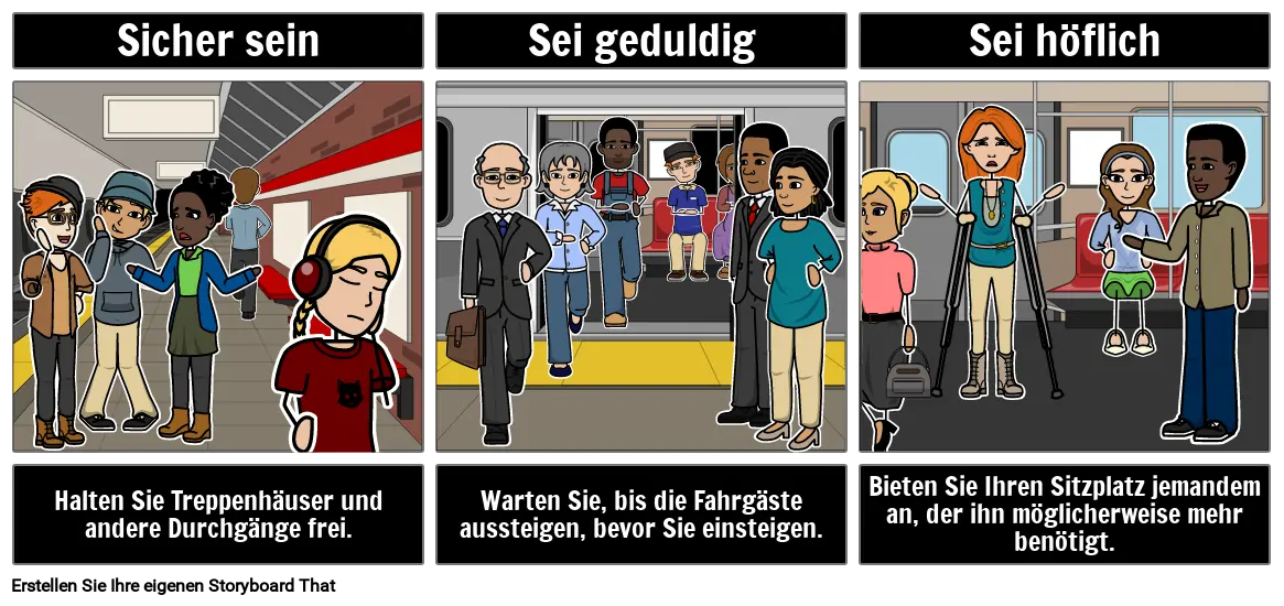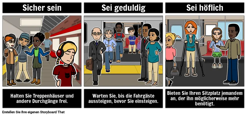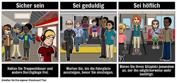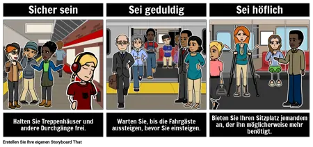 Beispiele für Bekanntmachungen im öffentlichen Dienst: Wie man mit der U-Bahn fährt. Erstellen Sie einen PSA mithilfe eines Storyboards