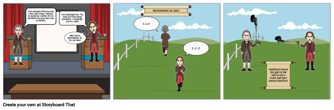 Even though Jefferson and I don't get along, I believe he would be a better fit for president because Burr has no beliefs.