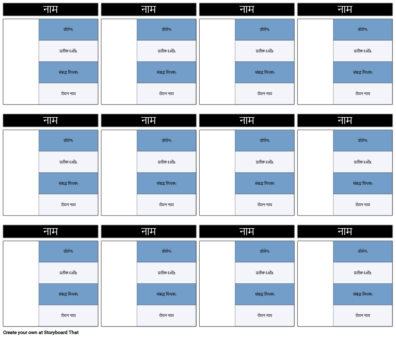 ग्रीक देवताओं और देवी देवताओं के लिए चरित्र मानचित्र टेम्पलेट। फ़ील्ड में डोमेन, प्रतीक, संबद्ध मिथक और रोमन नाम शामिल हैं।