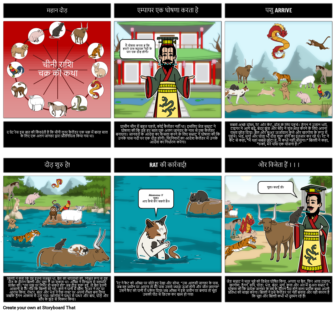 प्राचीन चीन से संबंधित कई अद्भुत मिथक और दंतकथाएं हैं जो इतिहास को बच्चों के लिए जीवंत बनाती हैं। इस कहानी को "द ग्रेट रेस" कहा जाता है और यह कहानी है कि चीनी राशि चक्र कैलेंडर कैसे आया। छात्रों को कहानी सुनने और फिर स्टोरीबोर्ड में चित्र और विवरण का उपयोग करके कहानी को फिर से पढ़ने का आनंद मिल सकता है!