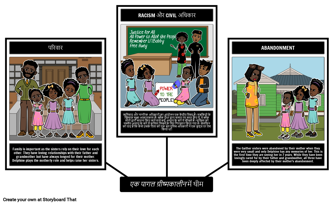 जातिवाद और नागरिक अधिकारों का आंदोलन एक केंद्रीय विषय है। लड़कियों के खिलाफ सूक्ष्म आक्रामकता हैं। ब्लैक पैंथर द्वारा चलाए गए समर कैंप में, वे ब्लैक लोगों द्वारा सामना किए जाने वाले कई अन्याय के बारे में सीखते हैं। नाज़िला को नस्लीय अन्याय के बारे में कविता लिखने के लिए गिरफ्तार किया गया है। डेलफिन को याद है कि कैसे उसके पिता को एक श्वेत पुलिस अधिकारी ने एक ड्राइव पर पेश किया था।