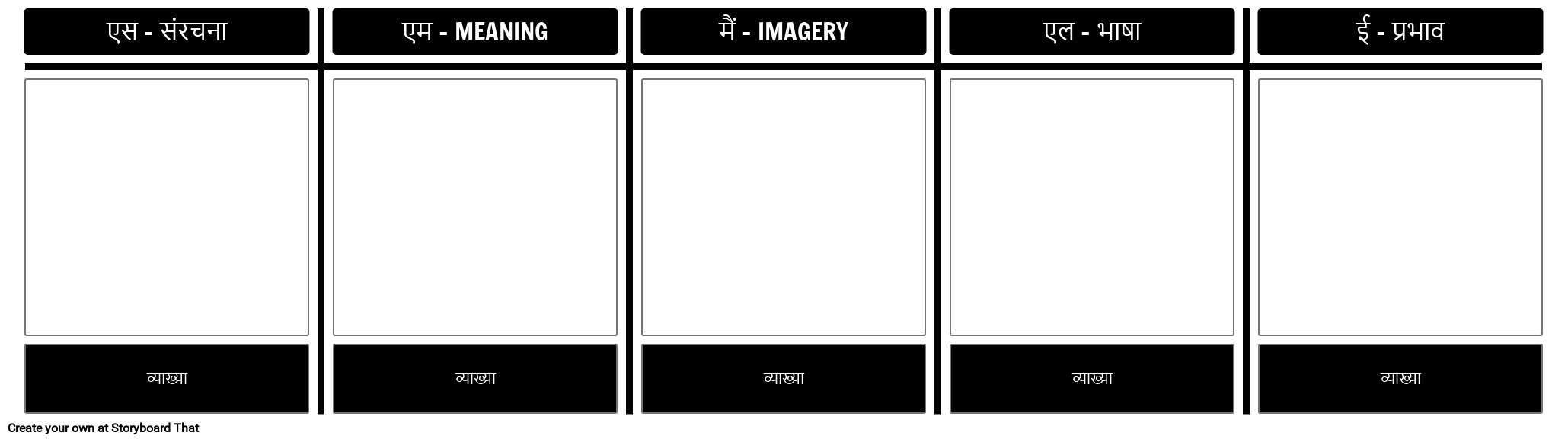 मुस्कान कविता विश्लेषण स्टोरीबोर्ड टेम्पलेट। यहाँ, SMILE का अर्थ स्ट्रक्चर, मीनिंग, इमेजरी, लैंग्वेज और इफेक्ट है
