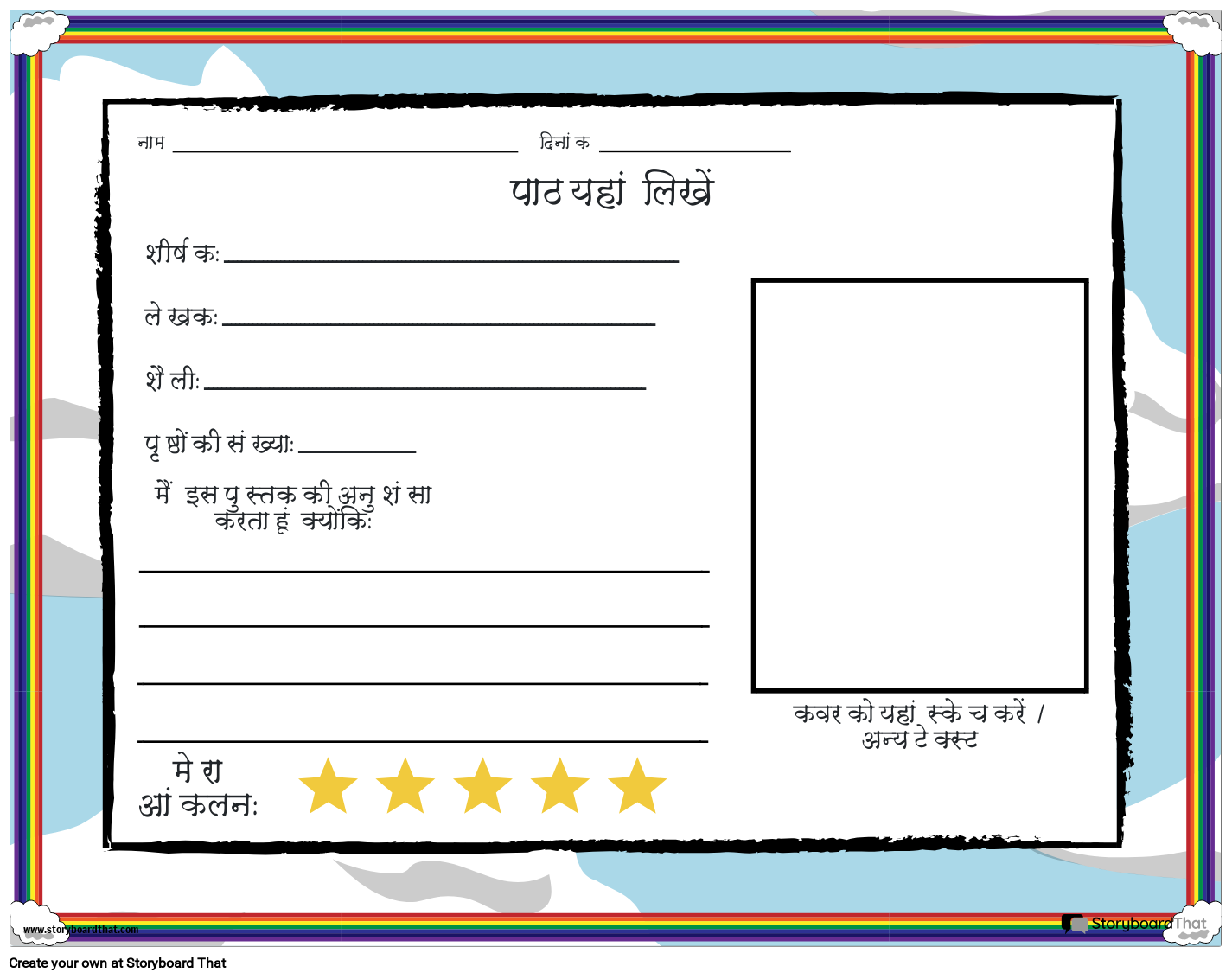 शीर्षक: _________________________________________________________________________________________________________ लेखक: ____________________________________________________________________________________________________ शैली: ______________________________________________________________________________________________________ पृष्ठों की संख्या: ___________________________