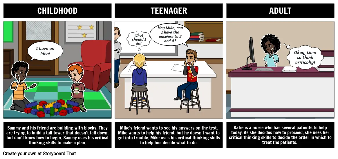 Katie is a nurse who has several patients to help today. As she decides how to proceed, she uses her critical thinking skills to decide the order in which to treat the patients.