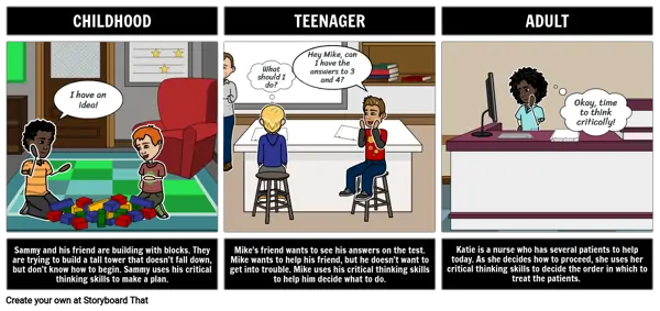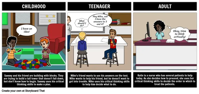 Mike's friend wants to see his answers on the test. Mike wants to help his friend, but he doesn't want to get into trouble. Mike uses his critical thinking skills to help him decide what to do.
