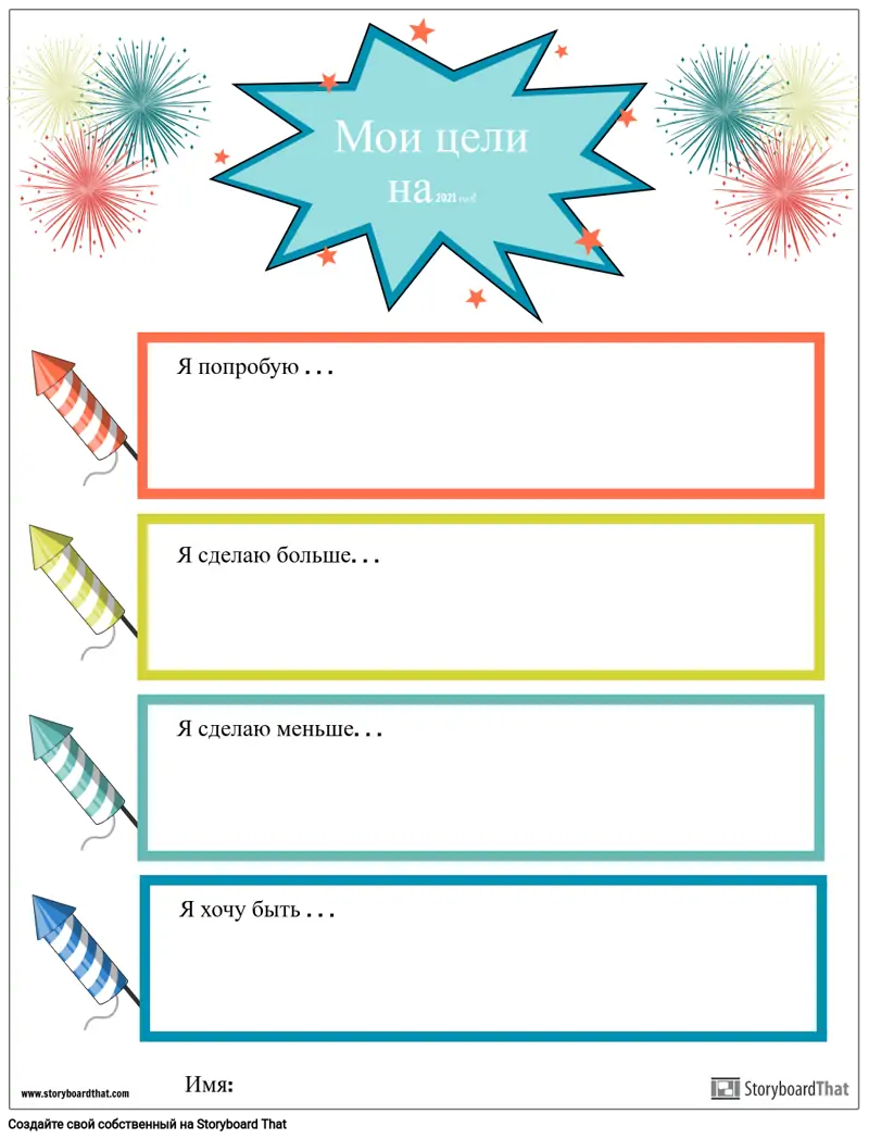 Учащиеся заканчивают начальные предложения, чтобы обдумать свои цели на предстоящий год. Они могут также пожелать добавить символы, предметы или символы, чтобы проиллюстрировать свои цели.
