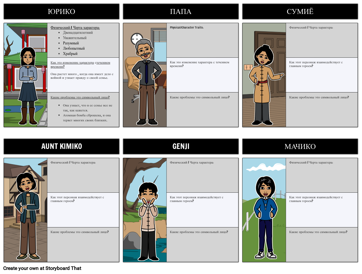 Физический / Черта характера: Двенадцатилетний Уважительный Разумный Любопытный Храбрый Как это изменение характера стечением времени? Она растет много , когда она имеет дело с войной и узнает правду о своей семье. Какие проблемы это символьный лицо? Она узнает, что в ее семье все не так, как кажется. Атомная бомба сброшена, и она теряет многих своих близких.