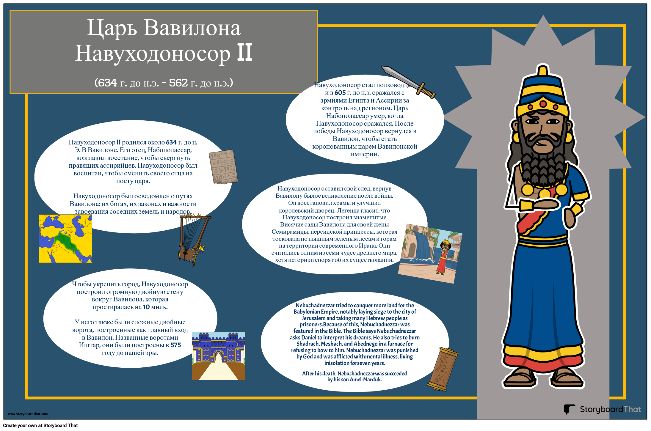 Навуходоносор II родился около 634 г. до н. Э. В Вавилоне. Его отец, Набополассар, возглавил восстание, чтобы свергнуть правящих ассирийцев. Навуходоносор был воспитан, чтобы сменить своего отца на посту царя. Навуходоносор был осведомлен о путях Вавилона: их богах, их законах и важности завоевания соседних земель и народов.