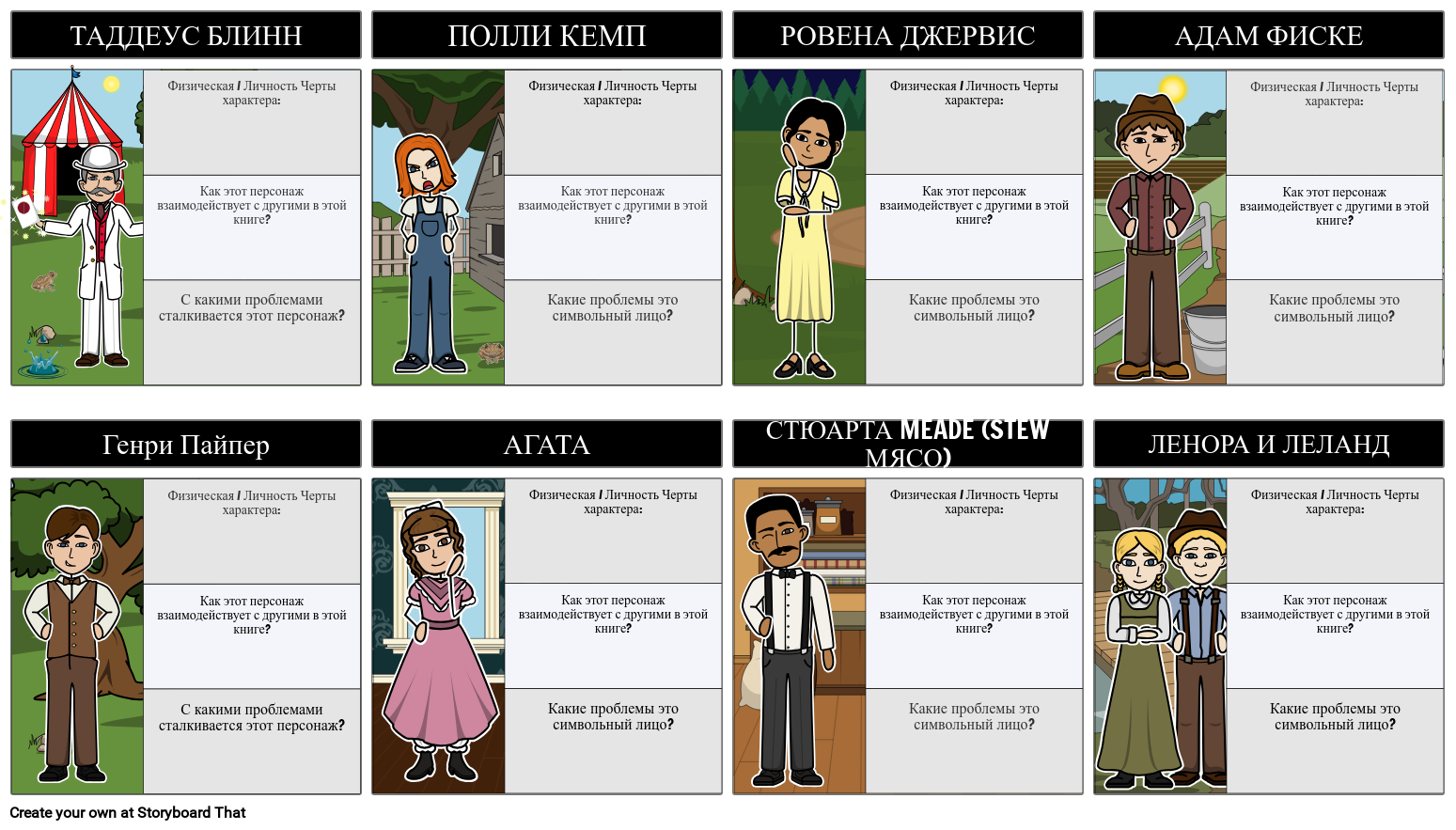 Учащиеся могут нарисовать персонажей книги и написать о физических / личностных качествах каждого персонажа, их взаимодействии с другими людьми и проблемах, с которыми они сталкиваются.