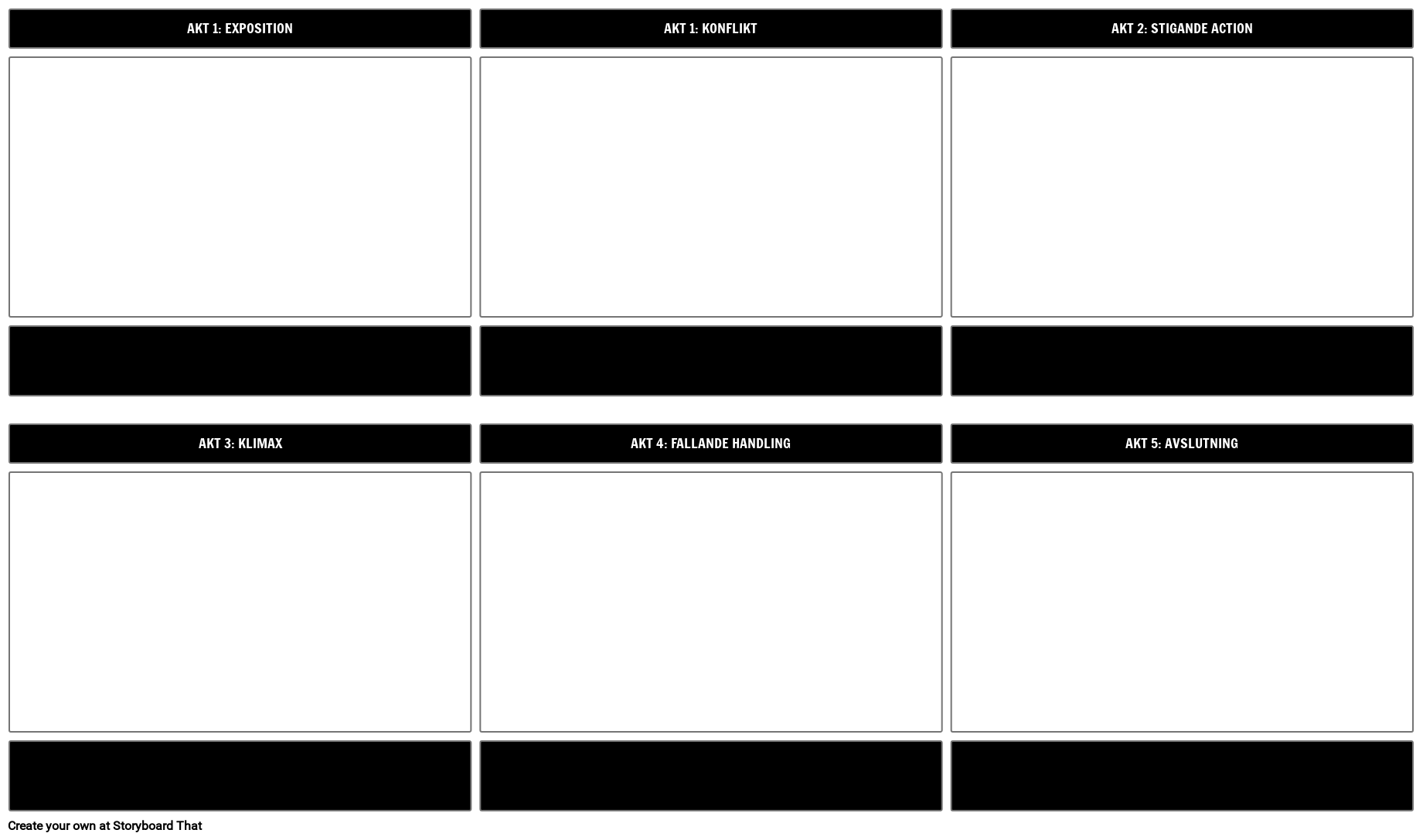 Femakts strukturmall 16x9 | Låt eleverna identifiera och illustrera nyckelpunkterna i varje akt i Shakespeareska pjäser med hjälp av strukturen i fem akter!