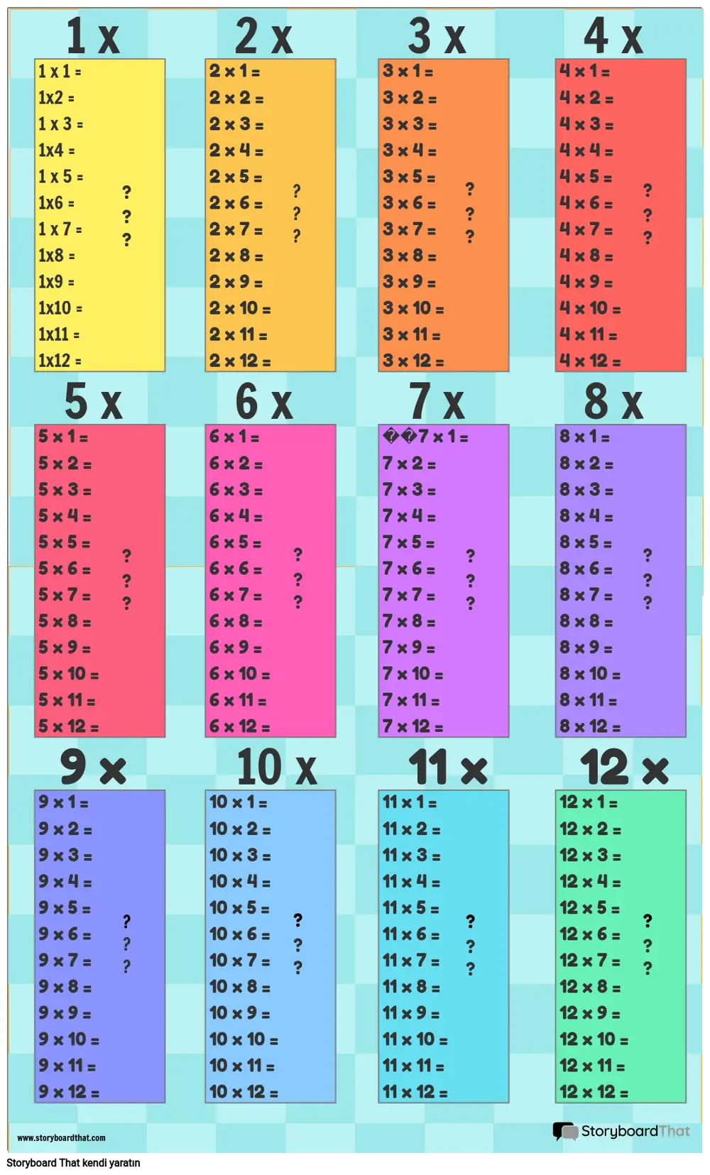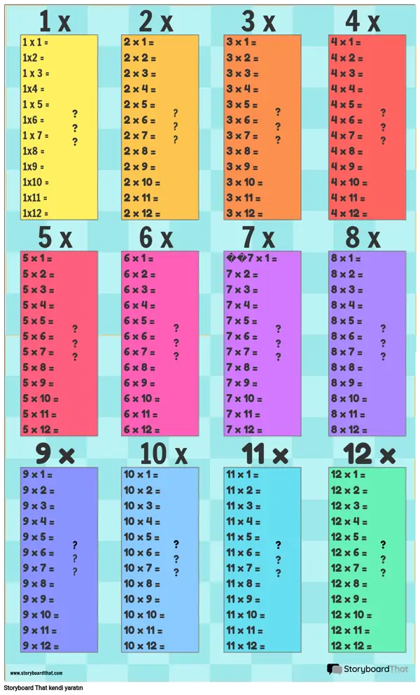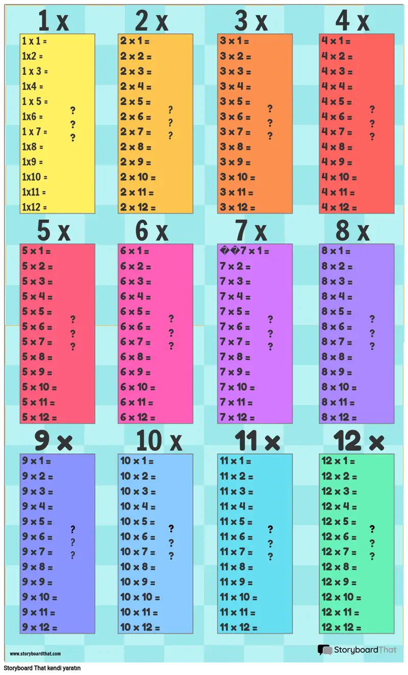 Çarpım Tablosu Poster Şablonları matematik için harikadır!