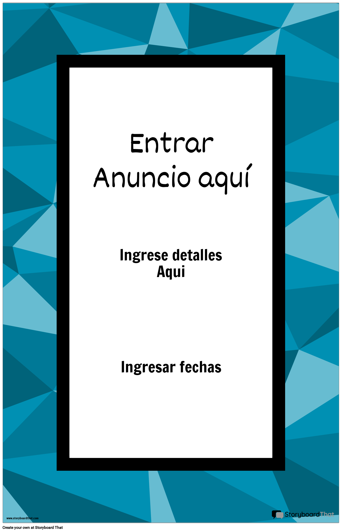 Los carteles de anuncios son una excelente manera de llamar la atención y hacer correr la voz sobre eventos o anuncios importantes. Si usted es un maestro que busca promover una nueva clase o actividad, un administrador que comunica un cambio en la política escolar o una organización estudiantil que anuncia un próximo evento, podemos ayudarlo a hacerlo de manera efectiva. En Storyboard That, facilitamos la creación de llamativos carteles de anuncios que llamarán la atención. Nuestra plataforma ofrece una gama de plantillas de anuncios gratuitas y un creador de carteles de anuncios fácil de usar para ayudarlo a diseñar su cartel perfecto.