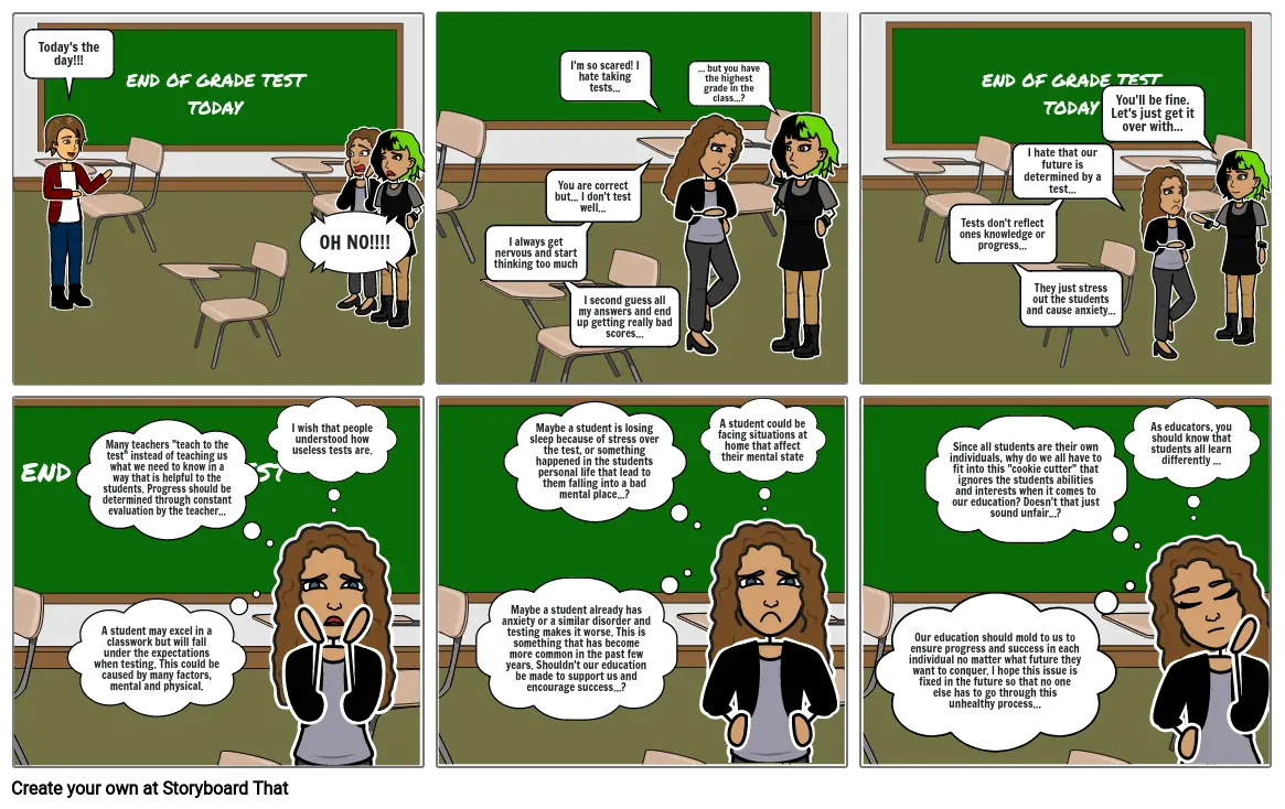 Maybe a student already has anxiety or a similar disorder and testing makes it worse. This is something that has become more common in the past few years. Shouldn't our education be made to support us and encourage success...?