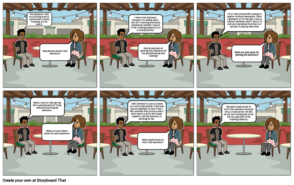 The business I will be starting soon is called Jones Family Trucking. JFC for short!