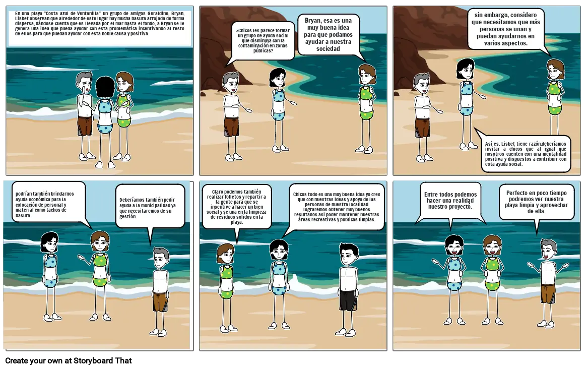 En una playa "Costa azul de Ventanilla" un grupo de amigos Geraldine, Bryan, Lisbet observan que alrededor de este lugar hay mucha basura arrojada de forma dispersa, dándose cuenta que es llevada por el mar hasta el fondo, a Bryan se le genera una idea que pueda ayudar con esta problemática incentivando al resto de ellos para que puedan ayudar con esta noble causa y positiva.