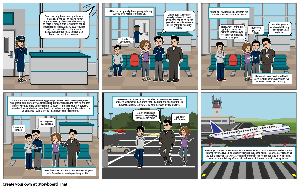 That flight from AirFrance marked the end of an era. I was now an only child. I did no longer have to live up to what my brother expected of me. I was free of him and of the guilt that our faulty relationship invoked in me. As my dad was driving home, I saw the plane taking off, and at that moment, I saw a new life coming for me.