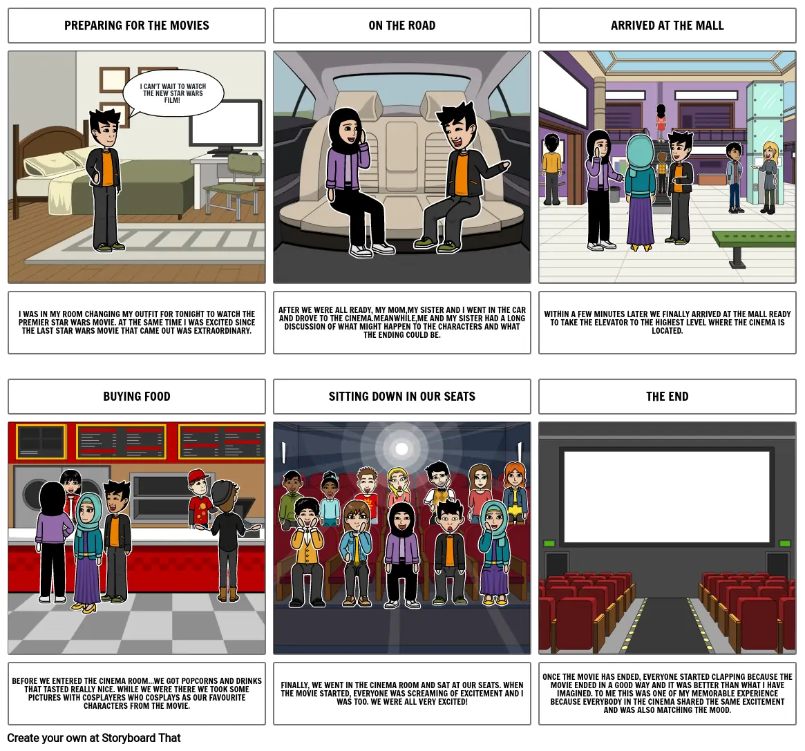FINALLY, WE WENT IN THE CINEMA ROOM AND SAT AT OUR SEATS. WHEN THE MOVIE STARTED, EVERYONE WAS SCREAMING OF EXCITEMENT AND I WAS TOO. WE WERE ALL VERY EXCITED!