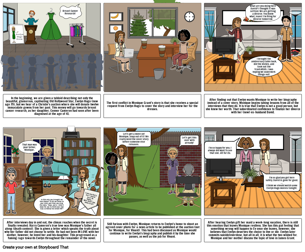 After finding out that Evelyn wants Monique to write her biography instead of a cover story, Monique begins taking lessons from all of the interviews that they do. It is true that Evelyn is not a good person, but she knew her worth. That subordinated confidence to finalize her divorce with her (now) ex-husband David.