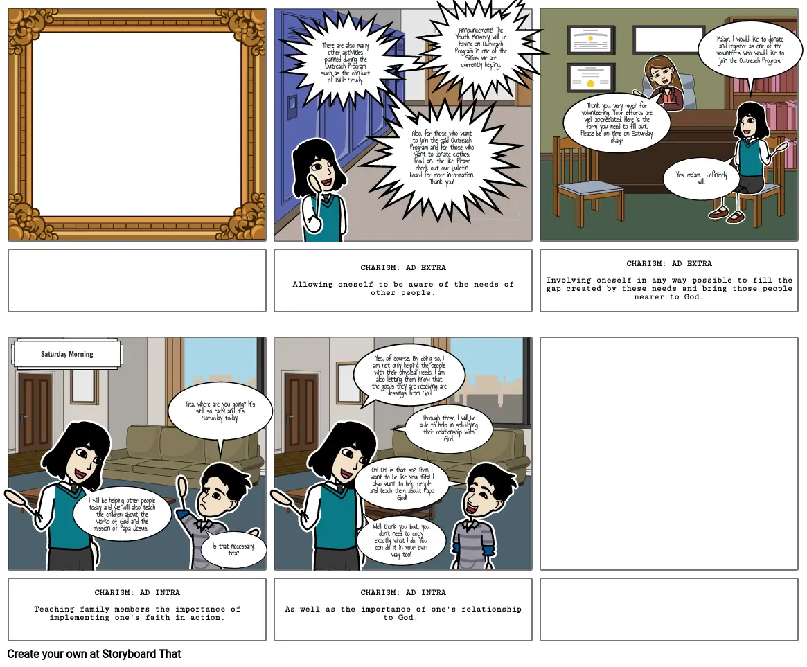 CHARISM: AD INTRATeaching family members the importance of implementing one's faith in action.