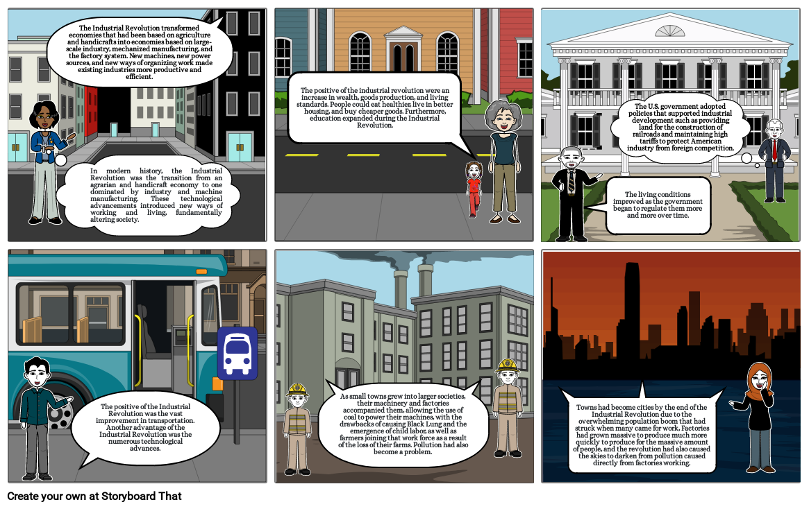 The positive of the industrial revolution were an increase in wealth, goods production, and living standards. People could eat healthier, live in better housing, and buy cheaper goods. Furthermore, education expanded during the Industrial Revolution.