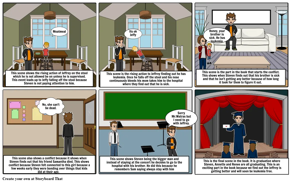 This is the final scene in the book. It is graduation where Steven, Annette and Renee are all graduating. This is an exciting part in the book because we find out the Jeffrey is getting better and will soon be leukemia free.