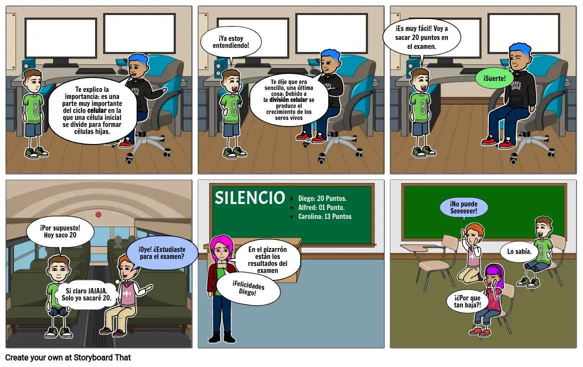 Diego: 20 Puntos.Alfred: 01 Punto.Carolina: 13 Puntos