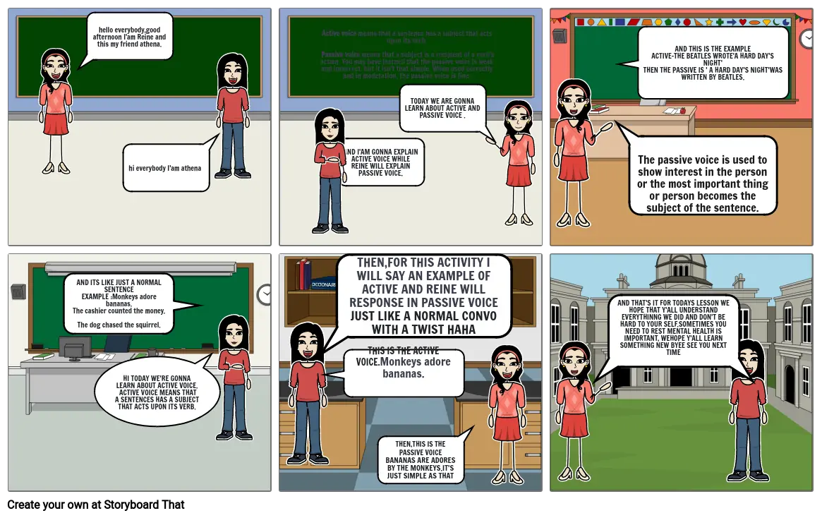 THEN,FOR THIS ACTIVITY I WILL SAY AN EXAMPLE OF ACTIVE AND REINE WILL RESPONSE IN PASSIVE VOICE JUST LIKE A NORMAL CONVO WITH A TWIST HAHA