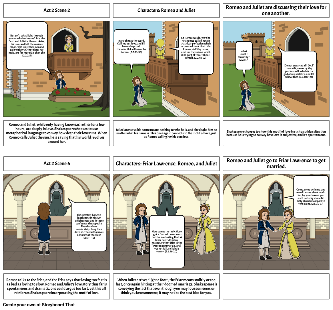 Romeo talks to the Friar, and the Friar says that loving too fast is as bad as loving to slow. Romeo and Juliet's love story thus far is spontaneous and dramatic, one could argue too fast, yet this all reinforces Shakespeare incorporating the motif of love.