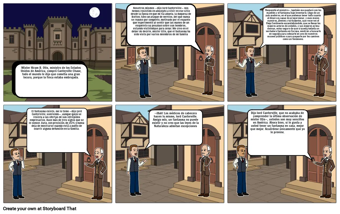 Míster Hiram B. Otis, ministro de los Estados Unidos de América, compró Canterville Chase, todo el mundo le dijo que cometía una gran locura, porque la finca estaba embrujada.