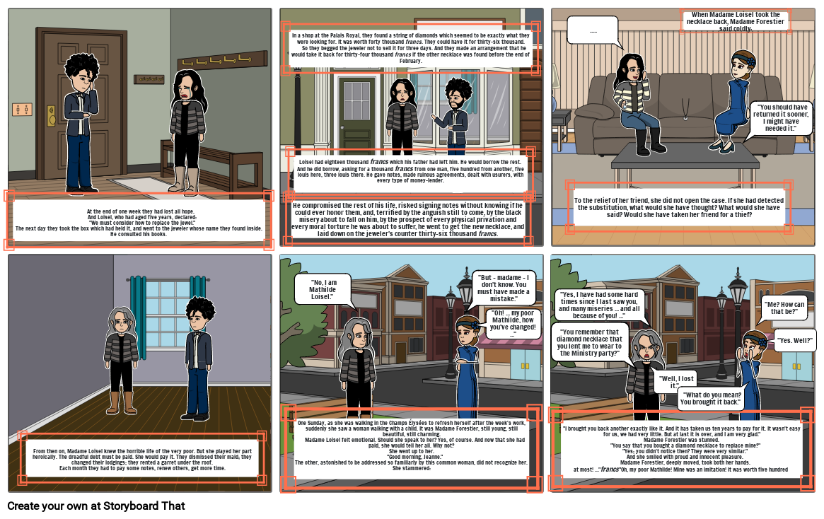 In a shop at the Palais Royal, they found a string of diamonds which seemed to be exactly what they were looking for. It was worth forty thousand francs. They could have it for thirty-six thousand.     So they begged the jeweler not to sell it for three days. And they made an arrangement that he would take it back for thirty-four thousand francs if the other necklace was found before the end of February.