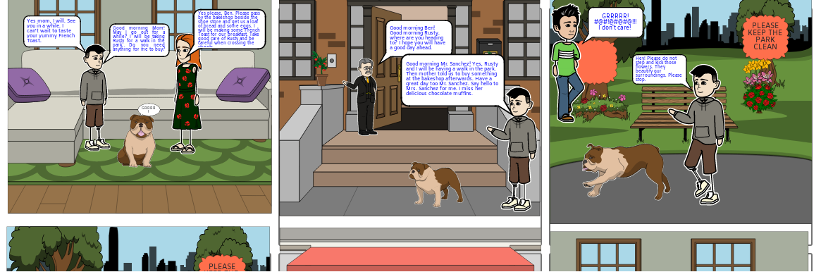 Good morning Mr. Sanchez! Yes, Rusty and I will be having a walk in the park. Then mother told us to buy something at the bakeshop afterwards. Have a great day too Mr. Sanchez. Say hello to Mrs. Sanchez for me. I miss her delicious chocolate muffins.