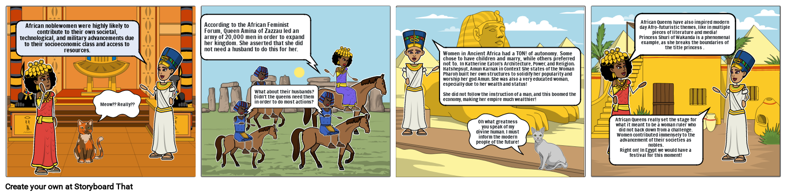 African Queens really set the stage for what it meant to be a woman ruler who did not back down from a challenge. Women contributed immensely to the advancement of their societies as nobles.Right on! In Egypt we would have a festival for this moment!