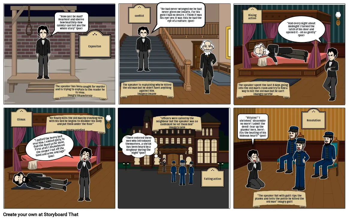 The speaker full with guilt rips the planks and tells the police he killed the old man imagry guilt