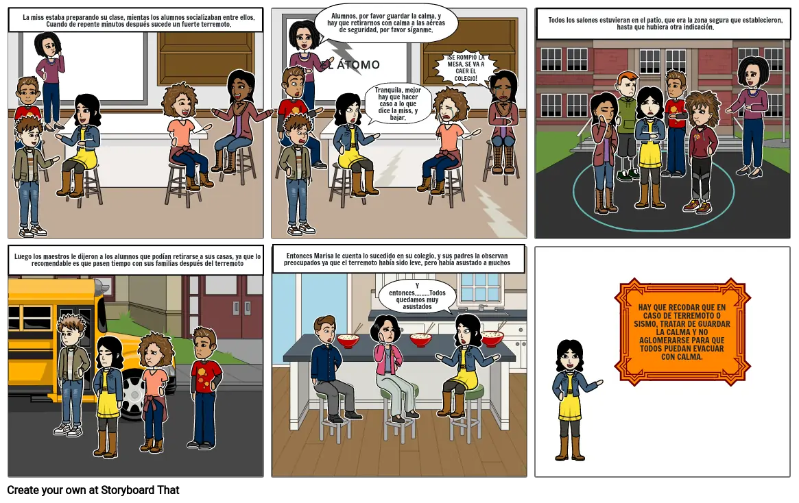 La miss estaba preparando su clase, mientas los alumnos socializaban entre ellos. Cuando de repente minutos después sucede un fuerte terremoto.