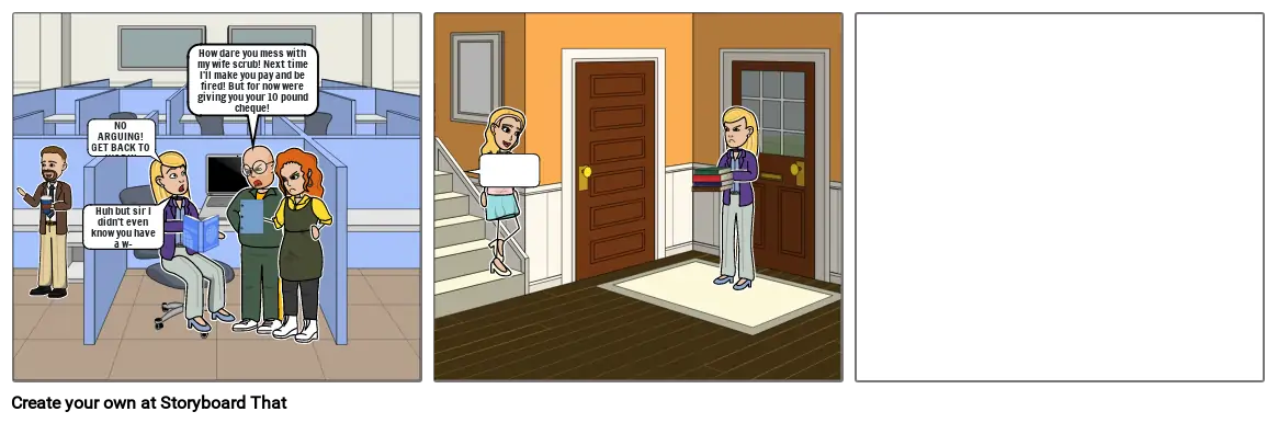 How dare you mess with my wife scrub! Next time I'll make you pay and be fired! But for now were giving you your 10 pound cheque!
