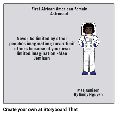 Mae Jemison growing up knew what she wanted to be and when asked by her teacher she said she wanted to become an scientist her teacher said, "Don't you mean a nurse."