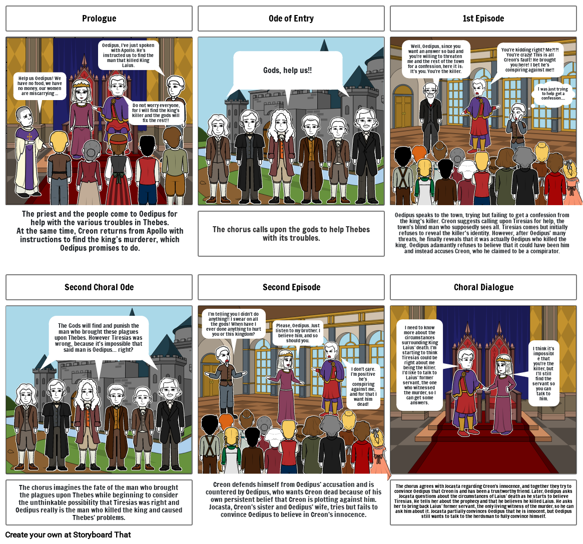 Oedipus, I've just spoken with Apollo. He's instructed us to find the man that killed King Laius.