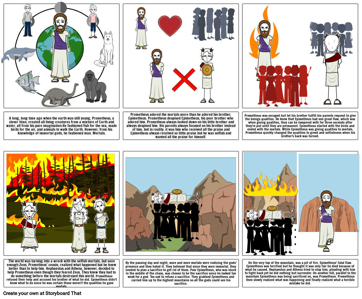 Prometheus adored the mortals more than he adored his brother, Epimetheus. Prometheus despised Epimetheus, his poor brother who adored him. Prometheus always looked down on his little brother and always despised him. His parents always focused on his brother instead of him, but in reality, it was him who received all the praise and Epimetheus always received so little praise but he was selfish and wanted all the praise for himself.