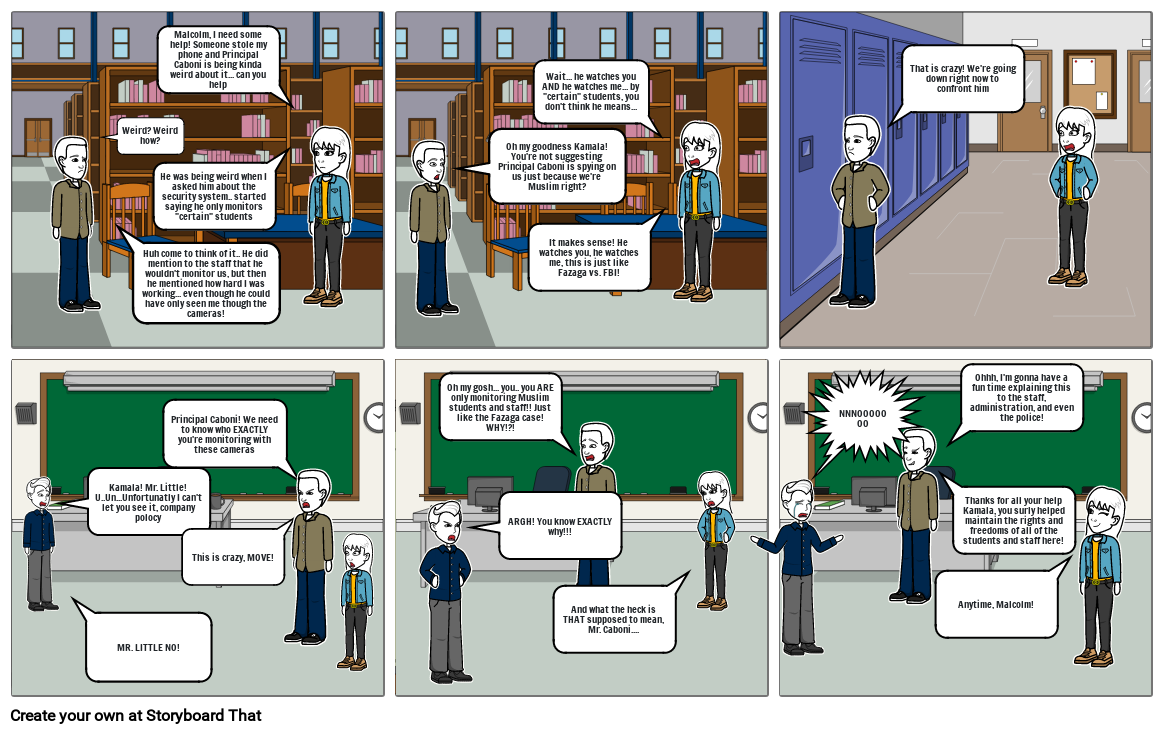 Oh my goodness Kamala! You're not suggesting Principal Caboni is spying on us just because we're Muslim right?