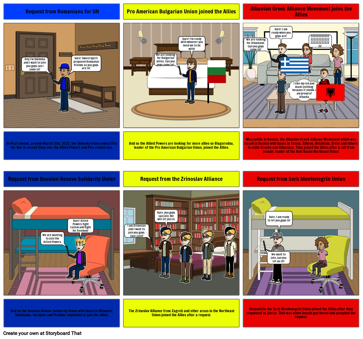 In Pico's house, around March 31st, 2022, the Shimeka Union asked Pico for him to accept them into the Allied Powers and Pico replied yes.