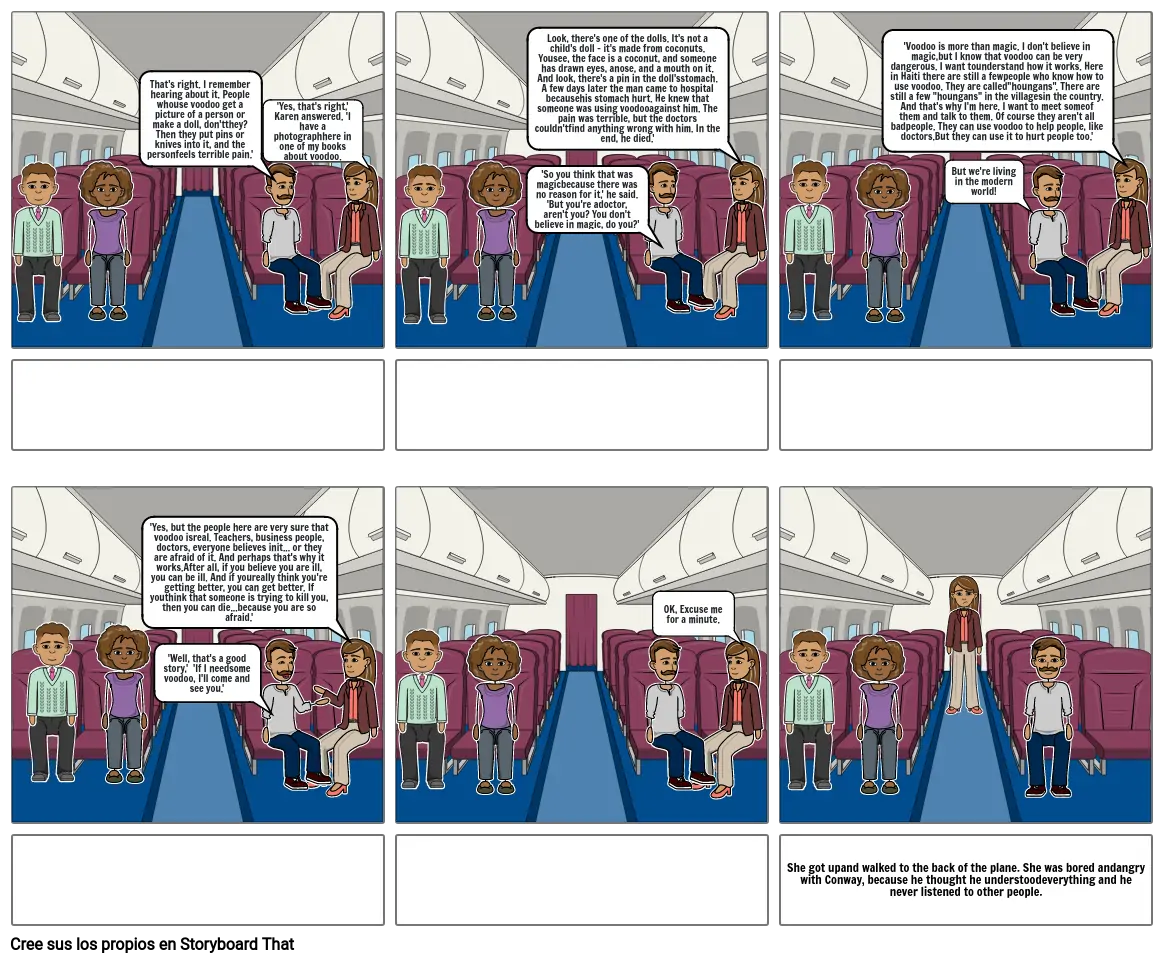 She got upand walked to the back of the plane. She was bored andangry with Conway, because he thought he understoodeverything and he never listened to other people.