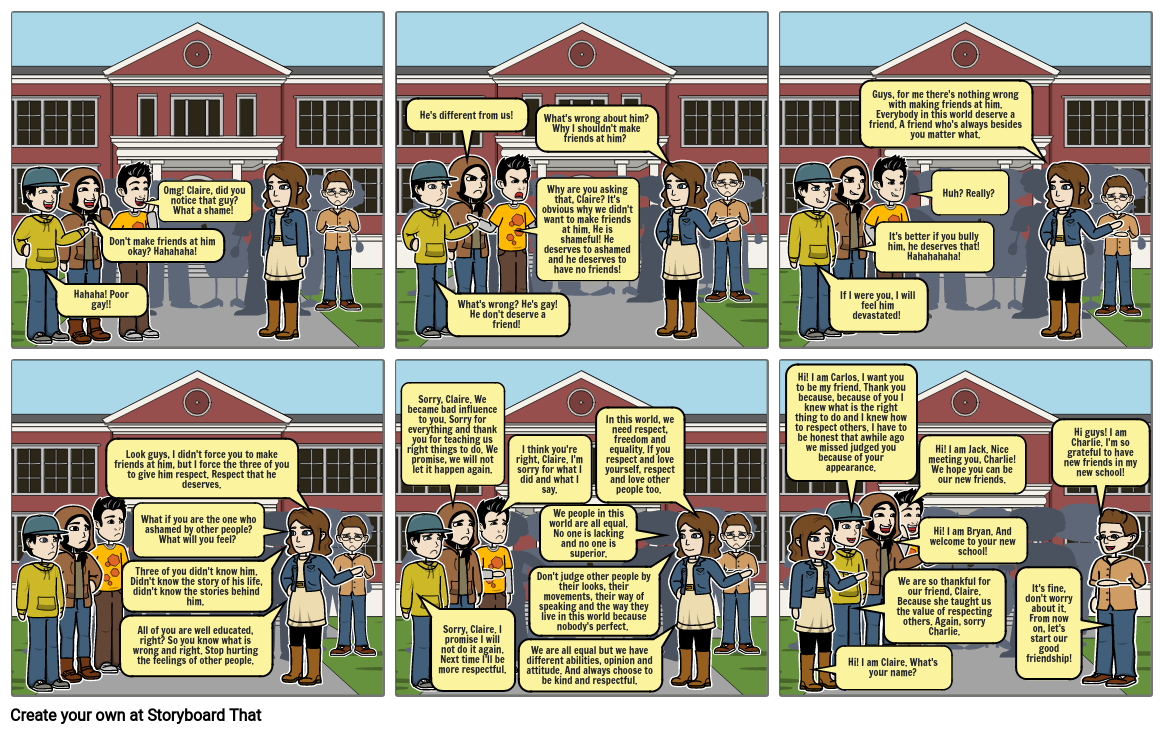 Hi! I am Carlos. I want you to be my friend. Thank you because, because of you I knew what is the right thing to do and I knew how to respect others. I have to be honest that awhile ago we missed judged you because of your appearance.