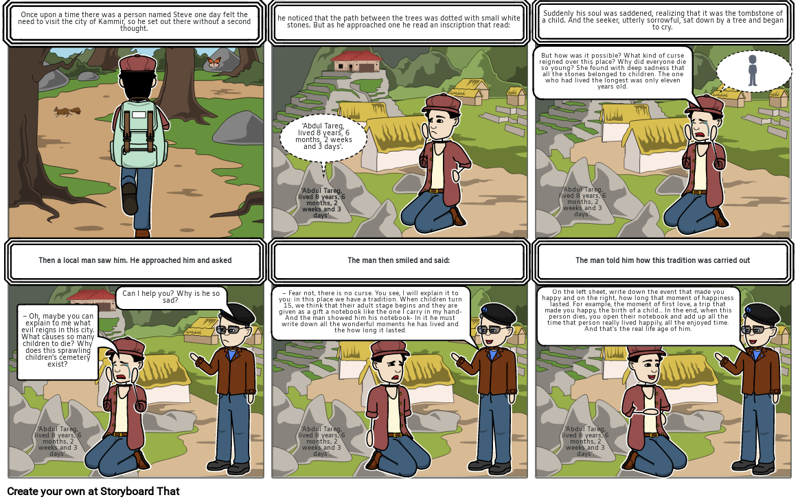 Suddenly his soul was saddened, realizing that it was the tombstone of a child. And the seeker, utterly sorrowful, sat down by a tree and began to cry.
