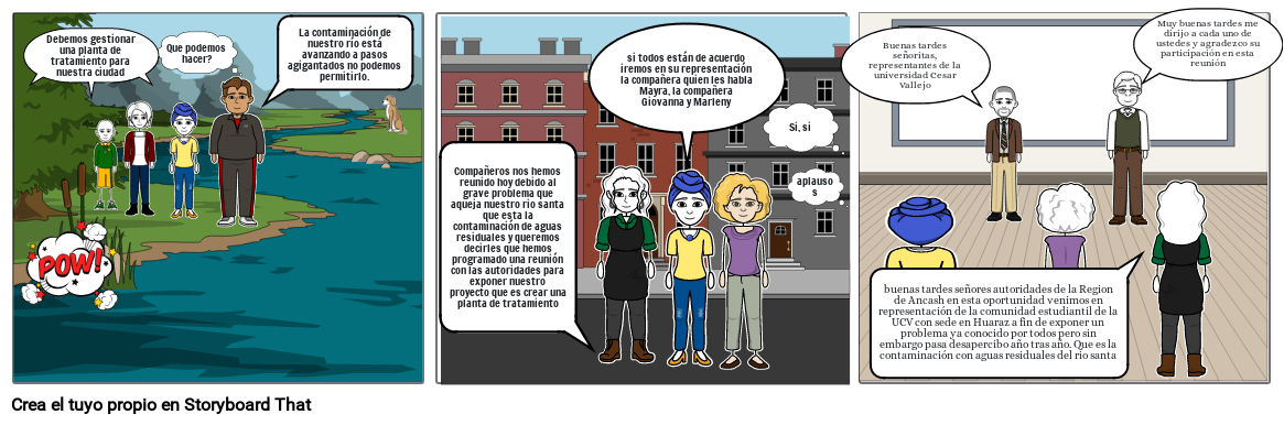 Compañeros nos hemos reunido hoy debido al grave problema que aqueja nuestro rio santa que esta la contaminación de aguas residuales y queremos decirles que hemos programado una reunión con las autoridades para exponer nuestro proyecto que es crear una planta de tratamiento