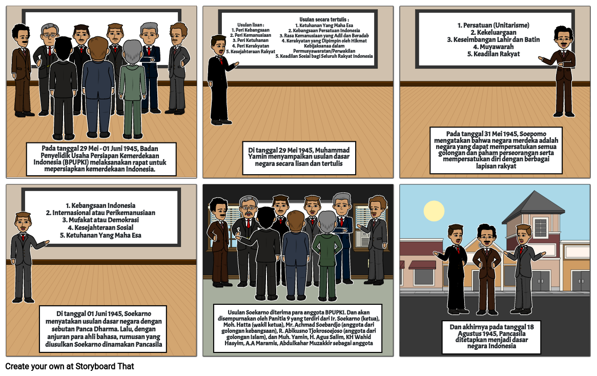 Pada tanggal 29 Mei - 01 Juni 1945, Badan Penyelidik Usaha Persiapan Kemerdekaan Indonesia (BPUPKI) melaksanakan rapat untuk mepersiapkan kemerdekaan Indonesia.